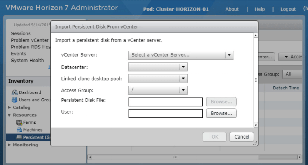 If you have Horizon Composer working with persistent disks, this is your permission you’re looking for. If you have that role in your user or group, you can see and change the following information: