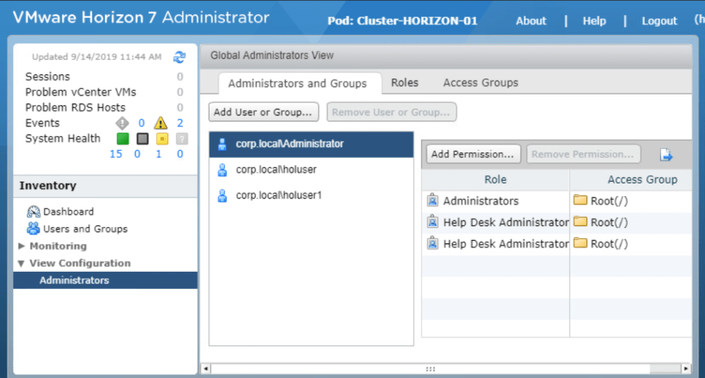 You have everything configured according your customer wanted, you are with you project manager and technical leader into cutover date and everything is running smoothly and efficiently. But, before starting you day 2 operations, you need to create and define roles and permissions in order to coordinate with the customer which person needs to have access to VMware Horizon and whose permission should be set.
