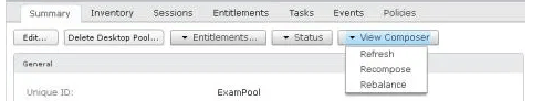 If you’re using VMware Horizon Composer, you have a tab where you can select among three options, which are Refresh, Recompose and Rebalance. If you have that permission, you can see that information into pool:
