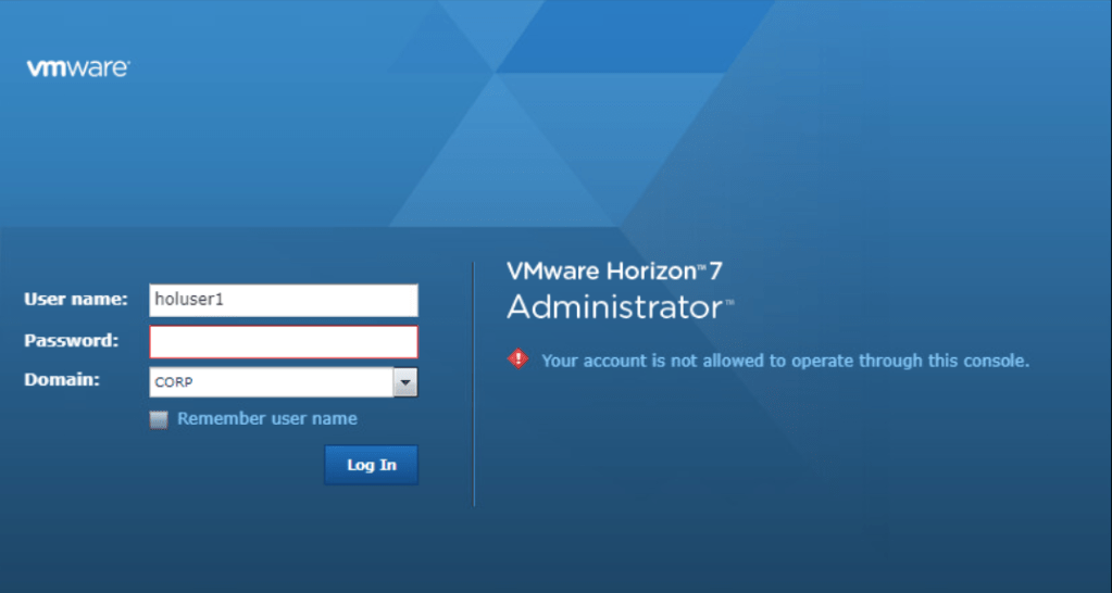 VMware Horizon console gets read only access and user / group is not allowed to change any option: