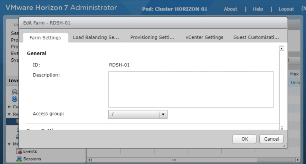 When this permission is given to a group or an individual, you can see the edit information from RDSH Farm or Desktop Pool: