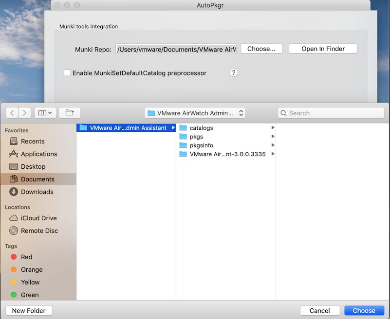 Note: If you’re using VMware AirWatch Admin Assistant, I strong recommend you to configure Munki tools and point to the following folder, save it and close: