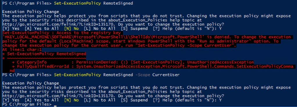 Set-ExecutionPolicy RemoteSigned – Scope CurrentUser
