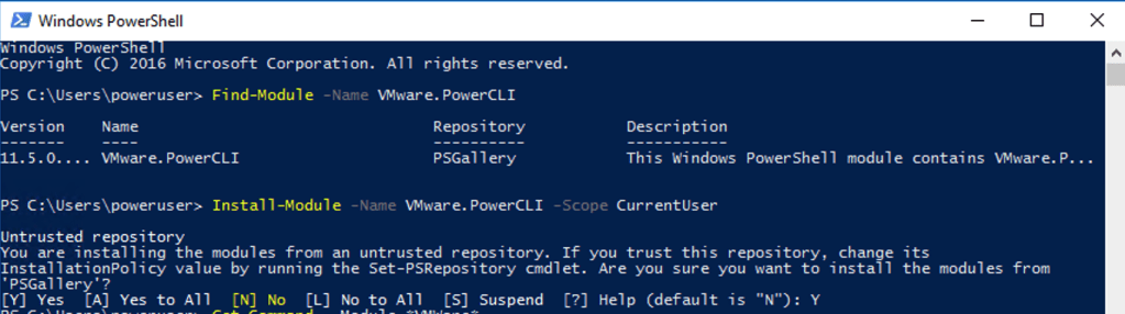 - Install-Module -Name VMware.PowerCLI -Scope CurrentUser