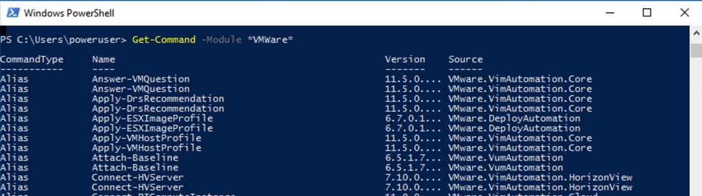 VMware PowerCLI is a command-line and scripting tool built on Windows PowerShell which you can use during management and automation script using vSphere, vRealize Operations Manager, vSAN, NSX-T, VMware Cloud on AWS, VMware HCX, VMware Site Recovery Manager and of course, VMware Horizon.