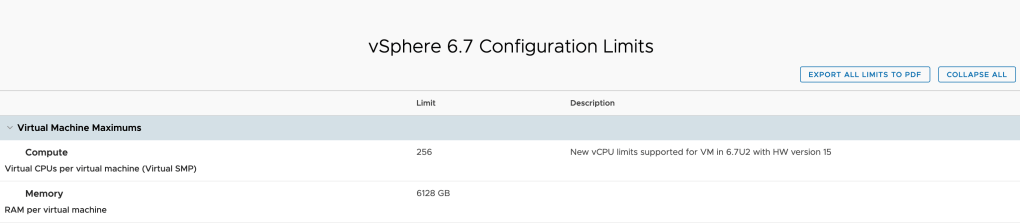 As some of you, I have some of the information from VMware Configuration Maximums source learned by heart and I’m really sure the RAM limitation per virtual machine is 6128 GB.