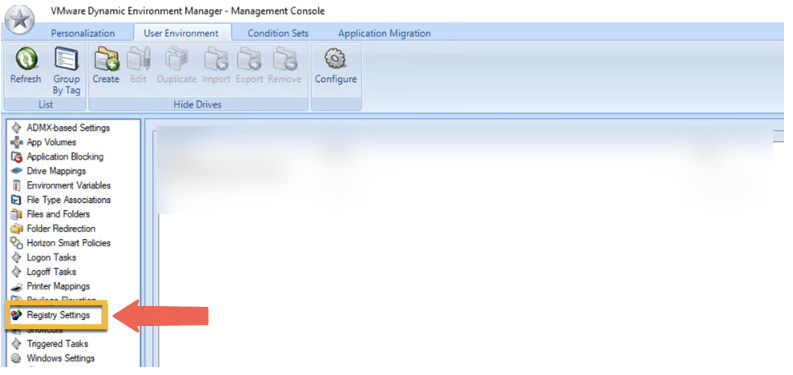 - Open Dynamic Environment Manager and let’s create a Registry Settings
