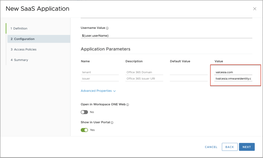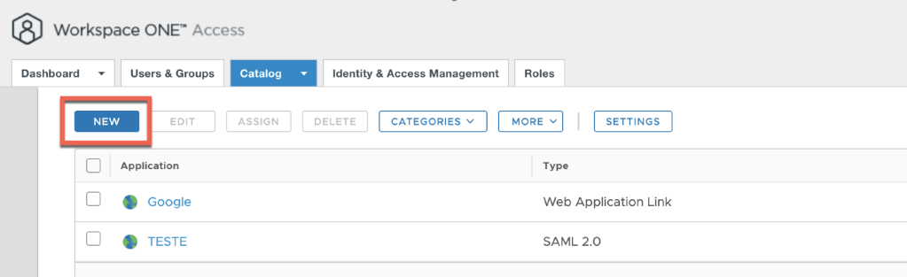 The application is ready from Workspace One Access side.
