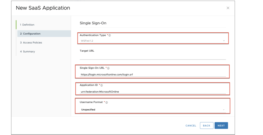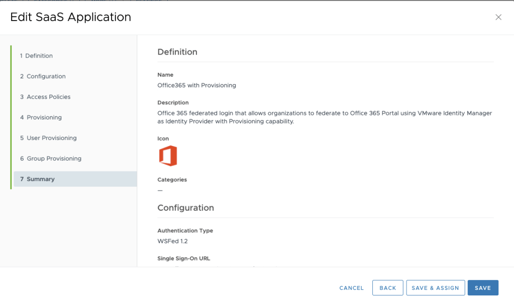 Now it’s time to set authentication type for Microsoft Online Services along with your Workspace One Access environment: