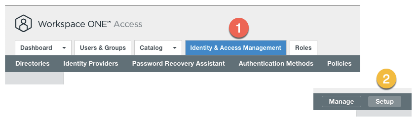 Check if your environment if properly configured accessing your Workspace One Access environment, clicking into Identity & Access Management tab and clicking in Setup.