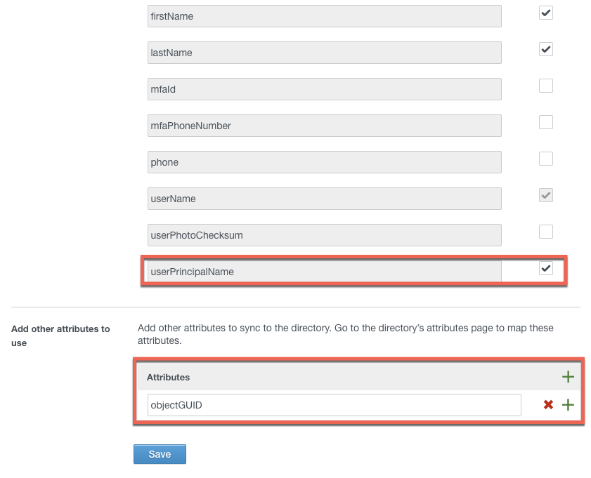 Under User Attributes, check if userPrincipalName and objectGUID are properly configured. You’ll need to add them in case you don’t have them.
