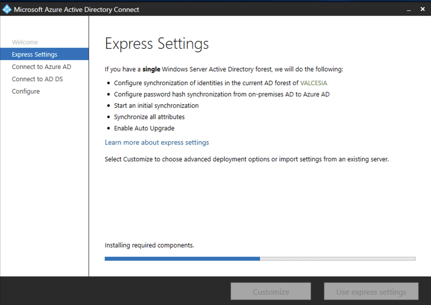 I’ll use Express Settings in my environment, if you need anything different, you can customize it (if you want to).
