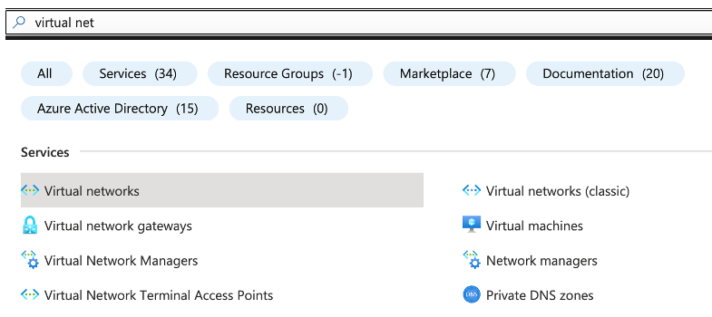 - On the Search page, let’s now create VNet accordingly necessary for Horizon Cloud Next-Generation