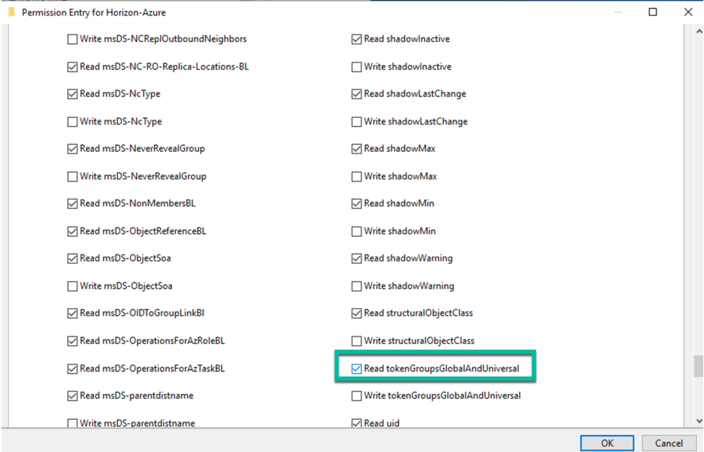 - Read tokenGroupsGlobalAndUniversal (implied by Read All Properties)